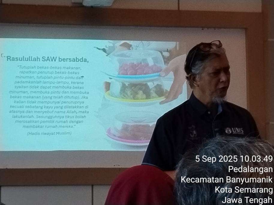 Dalam rangka mewujudkan rekognisi internasional, Fakultas Kesehatan Masyarakat Universitas Diponegoro menyelenggarakan Sustainability Program, berupa pengabdian internasional. Kegiatan tersebut dengan manghadirkan Prof Ts Dr Shamsul Bahari Shamsudin, University Malaysia Sabah (UMS). Kegiatan tersebut kolaborasi dengan Prof. Dr.Ir.Mursid dari FKM Universotas Diponegoro. Kegiatan ini bertema Keamanan Pangan Untuk Masyarakat. Peserta kegiatan adalah pengusaha Usaha Mikro Kecil dan Menengah (UMKM) Kecamatan Banyumanik, sebanyak 52 peserta. Substansi utama dari narasumber Malaysia, Prof Shamsul Bahari, adalah adanya Sabda Rasululah, dalam Hadis riwayat Muslim, ““Tutuplah bekas-bekas makanan, rapatkan penutup bekas-bekas minuman, tutuplah pintu-pintu dan padamkanlah lampu-lampu, kerana syaitan tidak dapat membuka bekas minuman, membuka pintu dan membuka bekas makanan (yang telah ditutup). Jika kalian tidak mempunyai penutupnya kecuali sebatang kayu yang diletakkan di atasnya dan menyebut nama Allah, maka lakukanlah. Sesungguhnya tikus boleh merosakkan pemilik rumah dengan membakar rumah mereka”. Juga menyampaikan ciri makanan sehat, “ makanan yang sihat (selamat) terhasil dari persekitaran yang sihat (bersih/hygiene)” Ciri-ciri makanan sihat : Bersih (hygiene) dan selamat dimakan; Seimbang (Balanced Diet); Segar dan berkualiti; Kurang garam, gula dan lemak; Diproses dengan kaedah sihat; Kaya serat; Bebas dari bahan perasa tambahan.”